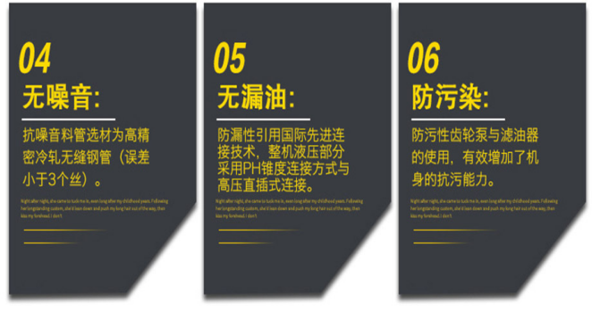 齒輪泵與濾油器的運(yùn)用,有用增加了機(jī)身的抗污才能,大大提高機(jī)身壽數(shù)與液壓油的運(yùn)用壽數(shù),處理原資料不潔凈而導(dǎo)致的疑問