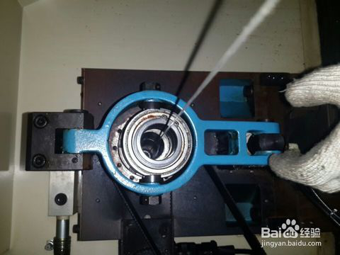 第四步:調(diào)整送料機(jī)尾部支架使尼龍線在機(jī)床主軸孔尾部中心位置;